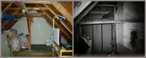 Nejtěžší atmosféru a energii jsme zaznamenali v podkroví. S ním sousedící půda, ze které majitelé domu slýchávají podivné zvuky jenž jim nahánějí strach, je však z domu nepřístupná. Abychom mohli do jejích prostor nainstalovat techniku, jediným vstupem je malý otvor zvenčí ze dvora. Jakpak se tam dostaneme? Než jsme se stačili rozkoukat po řebříku, Michal se mrštně prosoukal pod střechou a byl uvnitř. Umístil na půdu diktafon a fotopast, která bude v pohotovostním režimu po celou dobu vyšetřování.